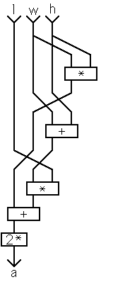 As always, the first thing we do having defined a word is test it, so; 3 4 5 SURFACE.AREA . [cr] 94 ok This is the correct result, so we can accept it. (In real life testing would be more extensive of course.) |