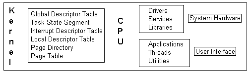 There are several Descriptor Tables defined each with its' own location register. These are the Global Descriptor Table (GDT), Local Descriptor Table (LDT) and the Interrupt Descriptor Table (IDT). These tables and the Task State Segment (TSS) are the core of the hardware portion of the tasker. The descriptor table size can change based on the number of task descriptors contained there in. These decriptors contain the segment base address and length assigned, flags as to task gate switching and activity semaphores, privilege level, I/O permission bit maps and the content of the registers if the task is inactive. A table driven system, privilege based, orchestrated by hardware, administered by the Operating System Kernel. Diagram follows.